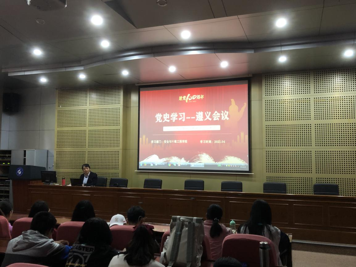 4月28日下午,​十大体育网站在J4-101开展党史学习教育专题宣讲。公司副经理曹晓强担任主讲人,环境工程2020级4班和环境工程(海洋环境方向)2017级全体员工参加学习