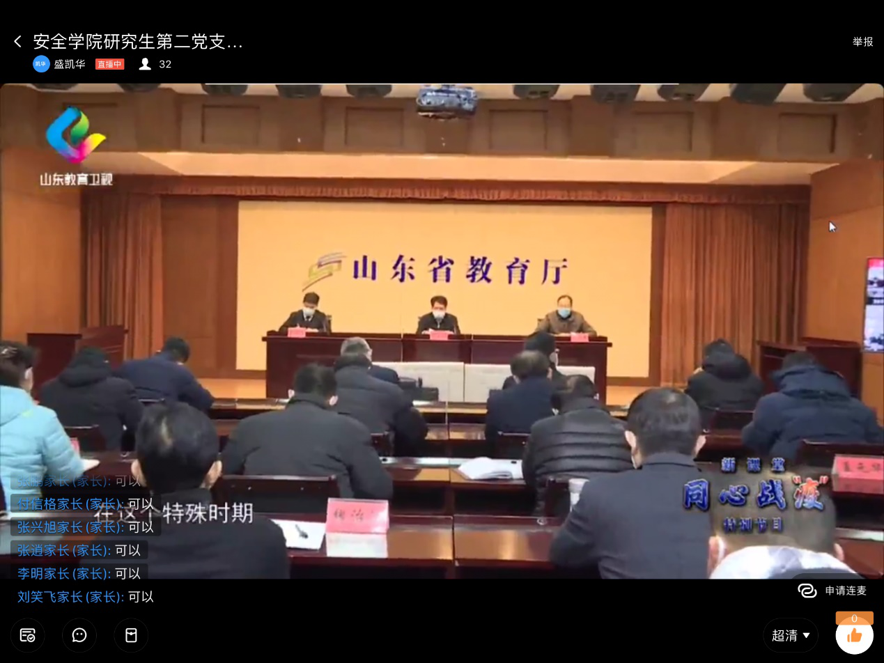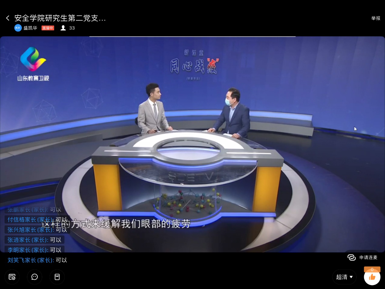 随后,支部成员盛凯华带领大家观看了主题教育视频——《新课堂—同心战“疫”》。观看视频后,与会党员分别就观看主题教育视频的感想以及个人在疫情防控工作中的做法做出交流发言。大家不约而同地认为在疫情防控工作中不光是“待在家中为国家做贡献”,还要积极主动的利用网络宣传疫情防控知识,劝导家人、朋友、同学等加强防护,尽量不出门,有事出门必须戴口罩等。