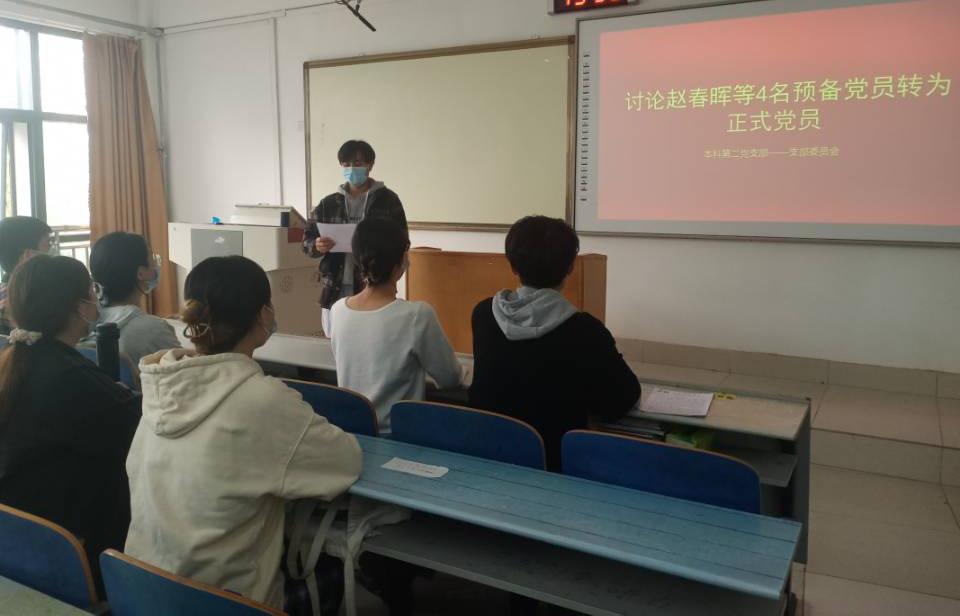 点击:3月2日,十大体育网站本科第二支部在S1-215召开正式党员接收讨论会议。会议讨论了关于接收赵春晖等四位同志为中共正式党员的相关事宜。支委会全体成员参加了此次会议。