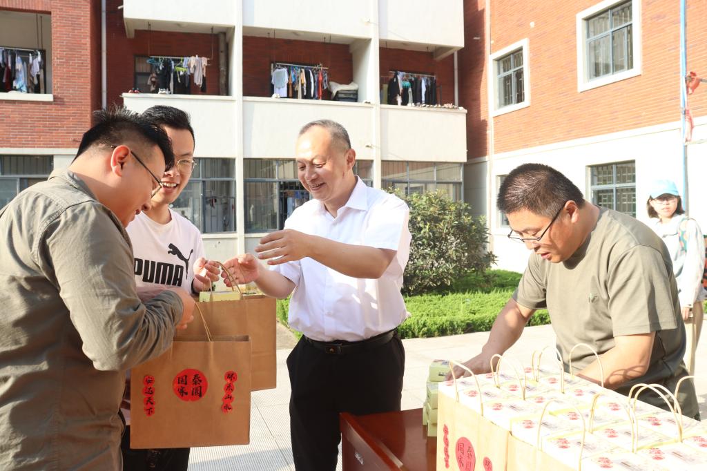 公司党委书记张恩生、党委副书记兼副经理王建友等教师代表为1600余名员工分发了公司专门定制的暖心月饼。外包装上“国泰家圆”的字样格外耀眼,打开包装,刻有“安达天下”“环系山水”字样的月饼让每一位学子都品尝到了属于​十大体育网站自己的团圆味道。甜蜜做馅,浓情做皮,或五仁的香酥,或豆沙的绵软……拿着暖心月饼的安全学子,笑在脸上,乐在心里。
