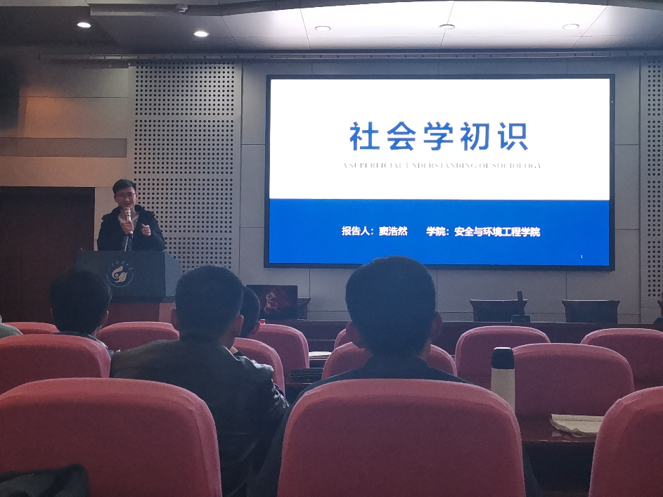 3月16日,由十大体育网站研究生会学术部主办十大体育网站承办的第911期研究生论坛在J4-319教室成功举办。主讲人为2020级安全科学与工程硕士窦浩然,主讲题目为《社会学初识》。