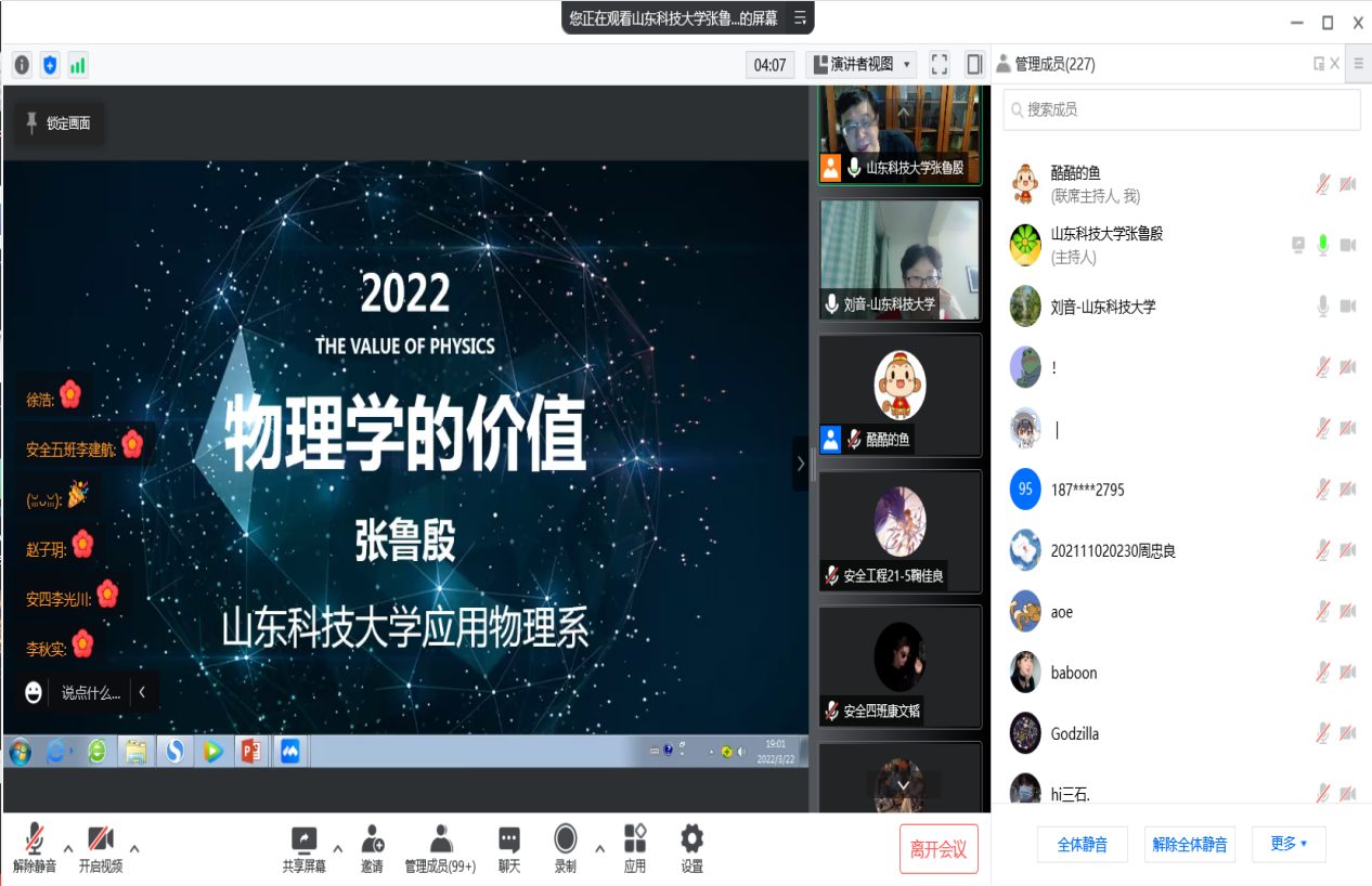 点击:大一新生入学以来,部分同学在高等数学、大学物理等基础学科学习方面存在困难,为激发同学们的学习积极性,帮助同学们克服畏难情绪,更好地投入学习,3月22日,十大体育网站开展大学物理学习指导线上讲座。本次讲座由应用物理系张鲁殷教授担任主讲,十大体育网站副经理刘音主持,2021级全体同学参加。