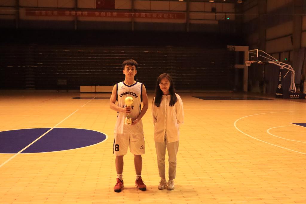 5月8日晚,随着裁判的一声哨响,决战正式拉开帷幕。身着白色球衣的研硕三队开始发动猛烈攻势,8号队员以迅雷不及掩耳之势在对方球员之间穿梭。精准有力的投篮,潇洒自如的动作,为队伍赢得了开场的首个三分球,全场瞬间爆发出高昂的欢呼声。而身着蓝色球衣的20安全队也毫不示弱,凭着顽强的防守,队员之间完美的配合,将双方比分逐渐拉小。最终,硕研三队凭借快攻快打的战术以62:45的比分赢得了比赛的胜利,成功卫冕冠军。硕研2019级宋增谋荣获最佳球员奖,2020级葛信诚荣获最佳防守奖。