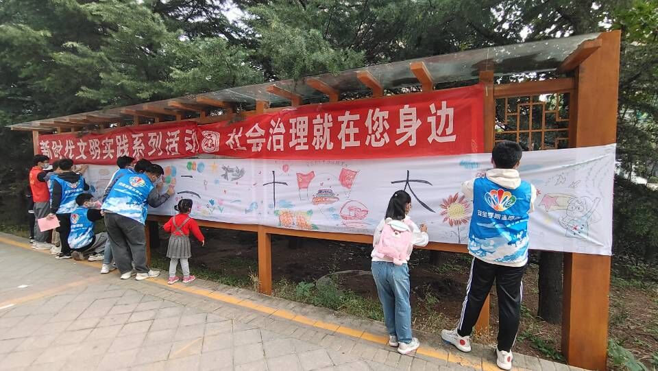 10月15日上午,​2021级9个团支部有序进入各自结对的社区开展服务。其中2021级环境1班、环境2班、环境3班、安全1班和安全3班分别进入沂河路社区、南下庄、龙湖原山、柳东社区以及灵珠山社区开展防诈骗宣传,向社区居民们进行防诈反诈知识讲解,帮助居民增强自我保护意识,避免网络诈骗等危害居民人身财产安全事件的发生。安全2班、安全5班在北下庄和金榜山社区进行垃圾分类等环保知识的宣讲,帮助社区清理落叶,协助社区工作人员对社区环境卫生进行全方位、全过程治理,美化社区环境,彰显老员工美德。安全3班团支部还与灵珠山社区的小朋友共同绘制“喜迎二十大”画卷,为党的二十大献礼。