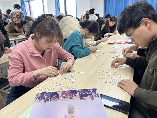 活动伊始,主持人细致地讲解活动规则和流程,本次拼图活动以红色经典故事为抓手,以传承红色基因为目的,通过小组对抗的方式进行拼图组合。随着主持人一声号令,比赛正式开始。