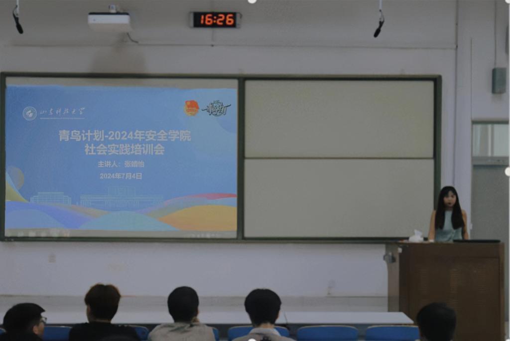 为进一步加强暑期“三下乡”社会实践的活动宣传,号召更多青年员工利用假期时间投身社会实践,激发同学们服务社会、服务人民的热情,7月4日,​十大体育网站于J1-222举办青鸟计划-社会实践经验交流宣讲会,此次宣讲邀请硕研2022级张靖怡同学为大家做经验分享交流,会议由2023级辅导员冷冬阳老师主持,全体2023级本科生参加宣讲会。