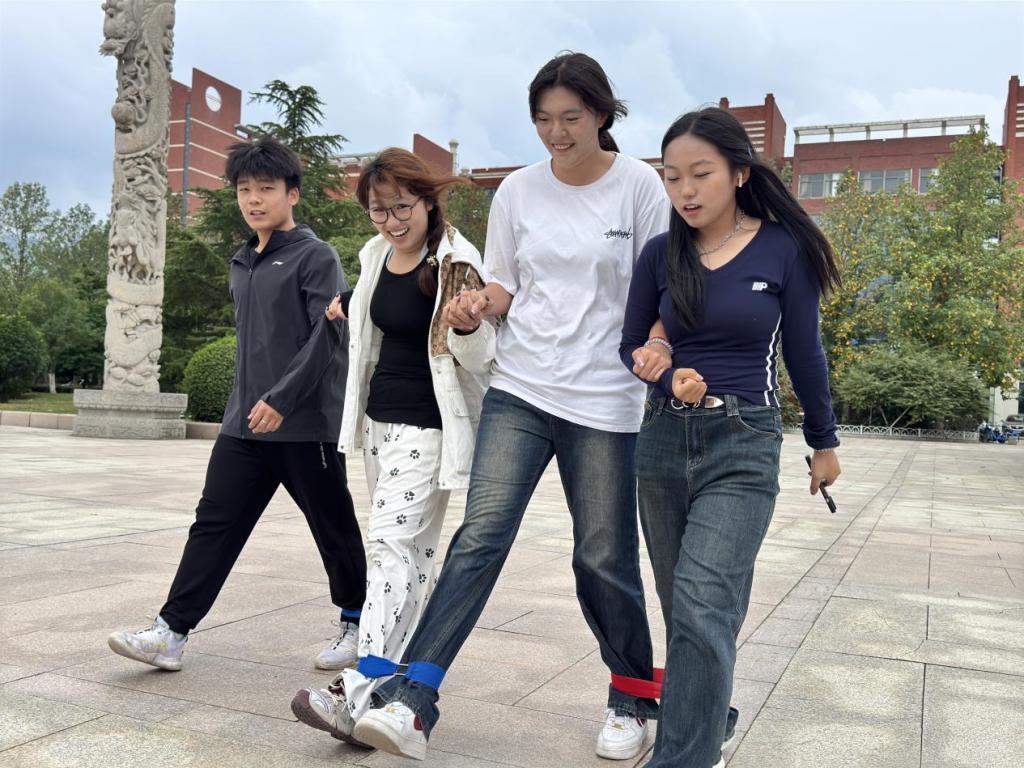 此次活动将校园中的景点连成打卡路线,并于公司晨读园、小西湖、泰山广场、励志坊、若水园、风雨操场设立多个任务点,每支参赛队伍需按照地图所标打卡路线完成趣味问答、你画我猜、四人五足等不同的探险任务,并集齐红旗贴纸,最后按用时长短排列名次。任务打卡和知识竞赛不仅是体力和脑力的双重比拼,还是对团队协作能力的考验。在探险过程中,同学们的足迹遍布校园的各个角落,与伙伴们并肩而行,欣赏沿途的风景,每一个任务点都充满了欢声笑语。同学们纷纷表示,校园探险大赛不仅锻炼了我们的身体素质和学习能力,更让我们在游戏中感受到新中国七十五周年风雨兼程的力量。