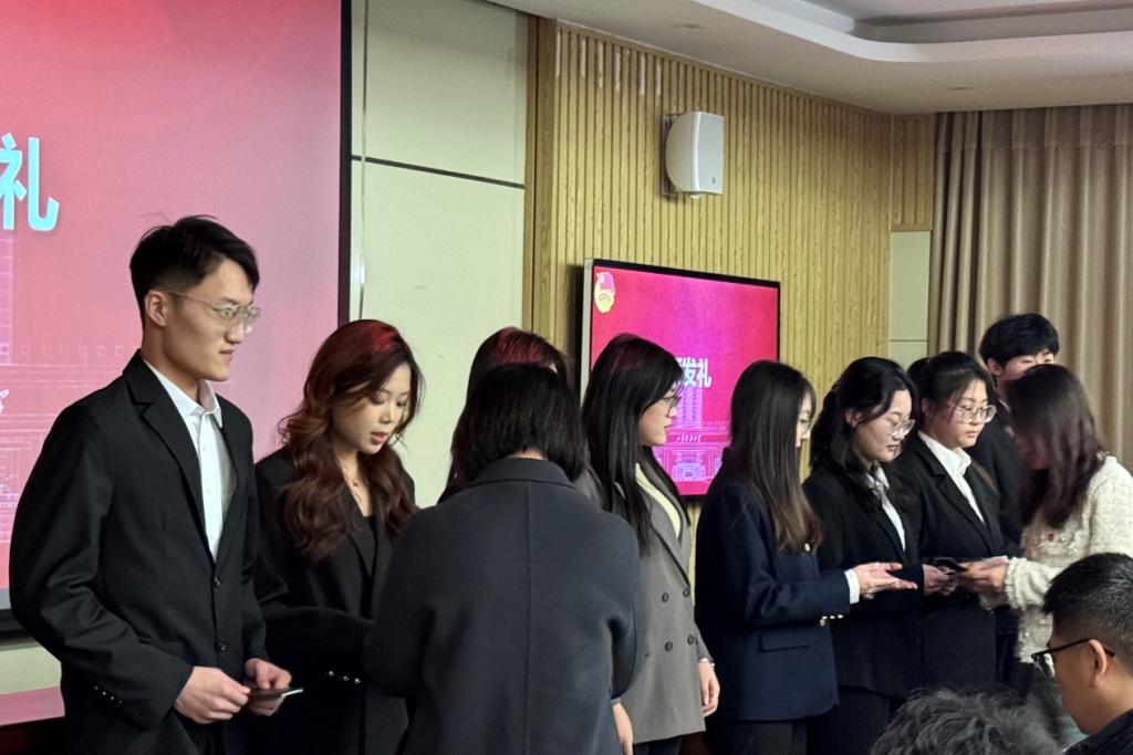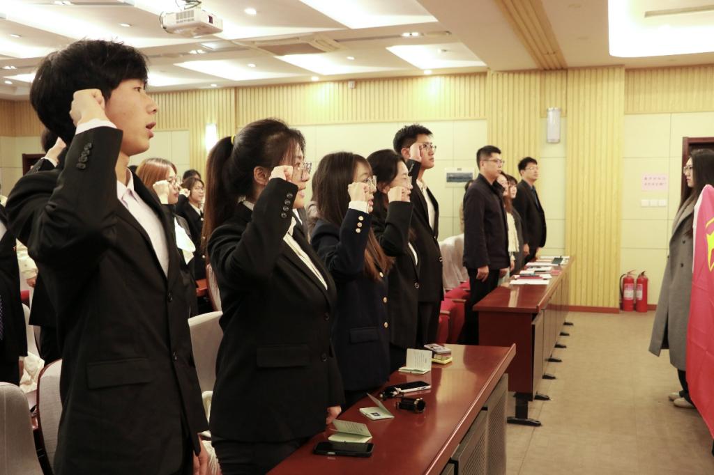 12月3日下午,能源公司、​十大体育网站、海洋公司、艺术公司于J9-135联合举办2024年新发展团员入团仪式。能源公司团委书记周尚涛,海洋公司团委书记刘骄,​十大体育网站辅导员李翊尘,艺术公司辅导员李丹,各公司的优秀团员代表和新发展团员出席仪式,仪式由艺术公司团委书记牟杰主持。