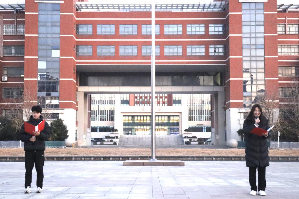 员工代表张锺雨和付钰婕在国旗下发表主题朗诵《青年》,真切阐述了新时代青年应有的担当和对青春的颂扬。从一二九运动到解放战争,中国青年始终站在时代的前沿,为民族独立、人民解放和国家富强接续奋斗。“愿吾亲爱之青年,相遇青春死于青春。生于少年,死于少年也。”更激励着一代又一代的中国青年继承先辈遗志,永葆奋斗热情,永远纯真善良。最后,全体师生庄严宣誓,反复响亮的“请党放心,强国有我”充分展现了青年学子以青春之我助力中华复兴的坚定决心。