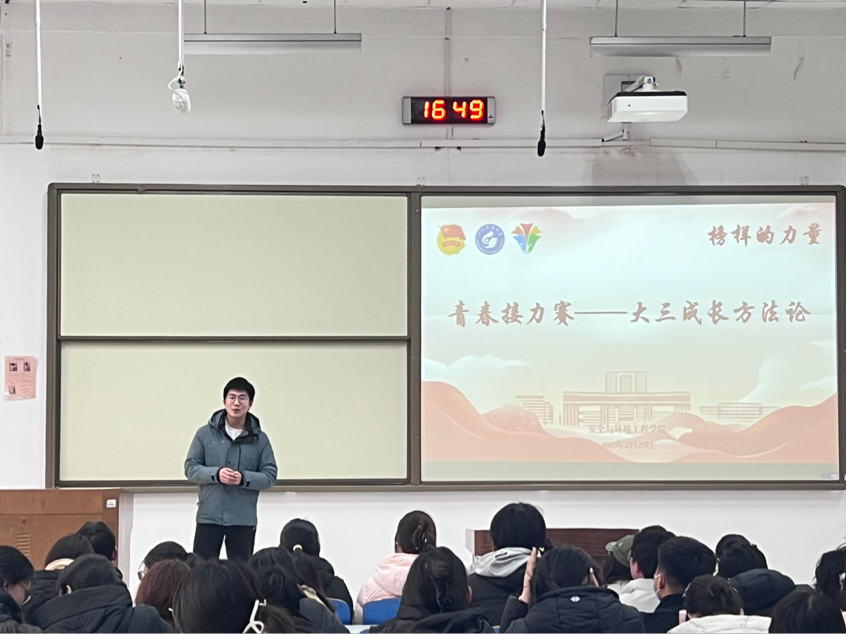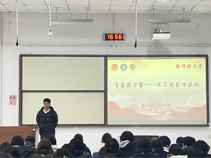 在经验分享环节,五位优秀学子以为学弟学妹们传授了宝贵的实战心得。安全工程2021级4班班长苗泽正详细解读了保研推免信息及备考策略,强调了提前规划和全面准备的重要性;环境工程2021级3班班长井瑞康揭秘了“求职考公双线作战”的时间管理法,分享了如何在平衡多重任务、安排宝贵时间的经验法宝;安全工程2021级2班李继飞从“专业课攻坚”角度剖析了扎实的专业基础和坚持不懈的努力是考研制胜的关键;环境工程2021级2班洪芳颖结合跨校备考经历,分享了心态调整、压力应对的实用建议;2023级优选计划辅导员崔凌南则通过“辅导员-员工”双重视角,解读了基层就业的发展路径,为同学们提供了多元化的职业选择参考。