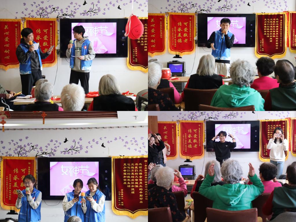 上午9时,活动在护养院活动厅正式拉开帷幕。青年志愿者协会成员李成志担任主持,向在场的爷爷奶奶们致以诚挚的问候,并代表青协所有成员对护养院的支持表达真挚的感谢。文艺汇演精彩纷呈,志愿者们轮番登台:马永鑫与王琪鑫带来的相声《奶奶的智慧生活》诙谐幽默,于世德的Bbox表演活力十足,肖思豪、周轩宇与王一诺等志愿者演唱的经典老歌《茉莉花》《南泥湾》,引发全场共鸣,不少老人轻声跟唱,中场休息时,志愿者还带领爷爷奶奶们共同完成“拍手操”,将现场氛围推到了高潮。