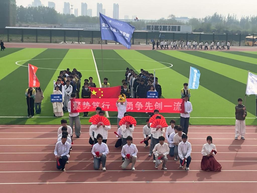 伴随着激昂的音乐,国旗护卫队迈着整齐而有力的步伐,昂首阔步进入操场,为开幕式注入了庄重而神圣的氛围10支班级方队逐一入场,他们精神抖擞、各具特色,展现着新时代安全学子的意气风发、拼搏向上的精神面貌。