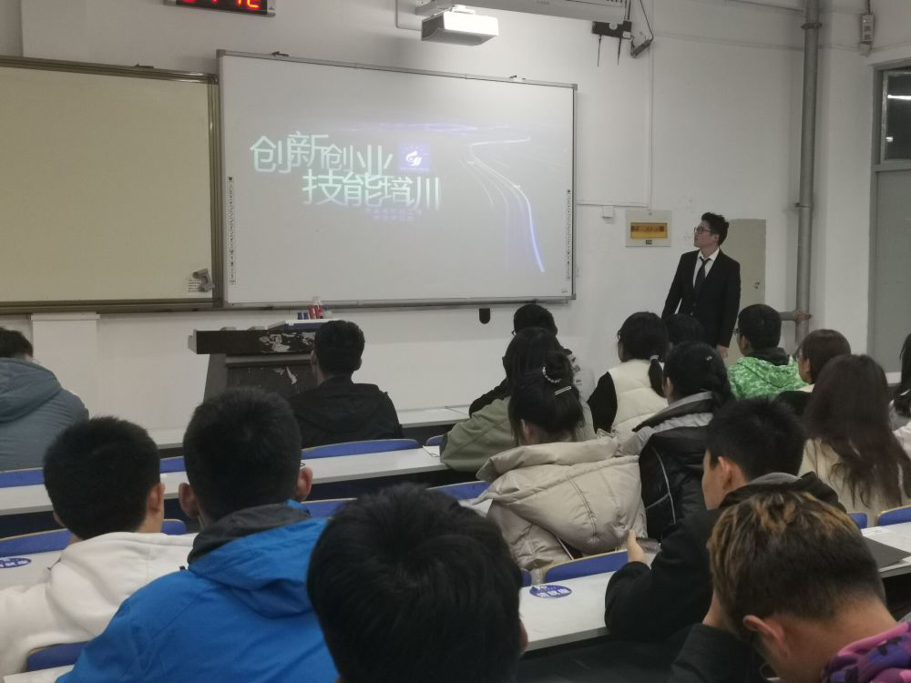 培训过程中,博文根据自己以往参加科技创新比赛的经验,通过PPT进行展示,幽默诙谐的讲解与到场同学进行深入交流。张博文首先介绍了“挑战杯”比赛的发展理念,并结合历届比赛中出现的优秀创意,从选题、撰写等方面依次进行讲解,帮助同学们更加深入的了解“挑战杯”比赛。考虑到大一新生对创新创业接触过浅,张博文以自己的参赛作品为模板,细致地讲解了参赛注意事项,介绍了相关软件的用,同时还解答了同学们关于参加比赛的一些问题。最后,张博文分析了历届优秀作品的亮点,鼓励大家积极参加比赛提高自己的能力,汲取经验,促进自身全面发展。