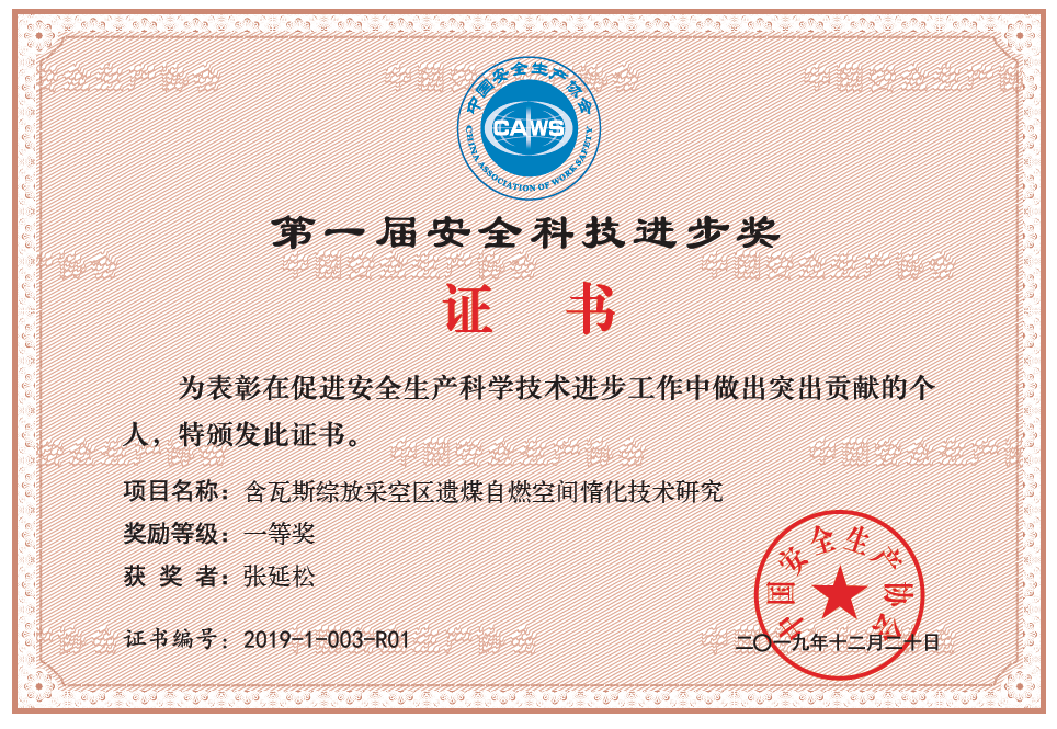 点击:由十大体育网站作为第一完成单位,十大体育网站张延松教授作为第一完成人的项目“含瓦斯综放采空区遗煤自燃空间惰化技术研究”荣获2019年中国生产协会安全科技进步奖一等奖,实现了公司在科技进步奖项上的再次飞跃。