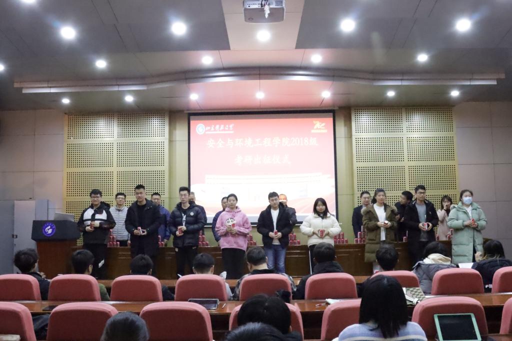 点击:12月22日,十大体育网站在J4-101报告厅举行2018级考研出征仪式。公司党委书记张恩生、党委副书记兼副经理王建友、副经理刘音、副经理聂文、应急系主任孟祥豹、环境系主任胡术刚、班主任代表张林林、团委书记潘刚、辅导员郭熙参加出征仪式并为考研员工送上祝福。