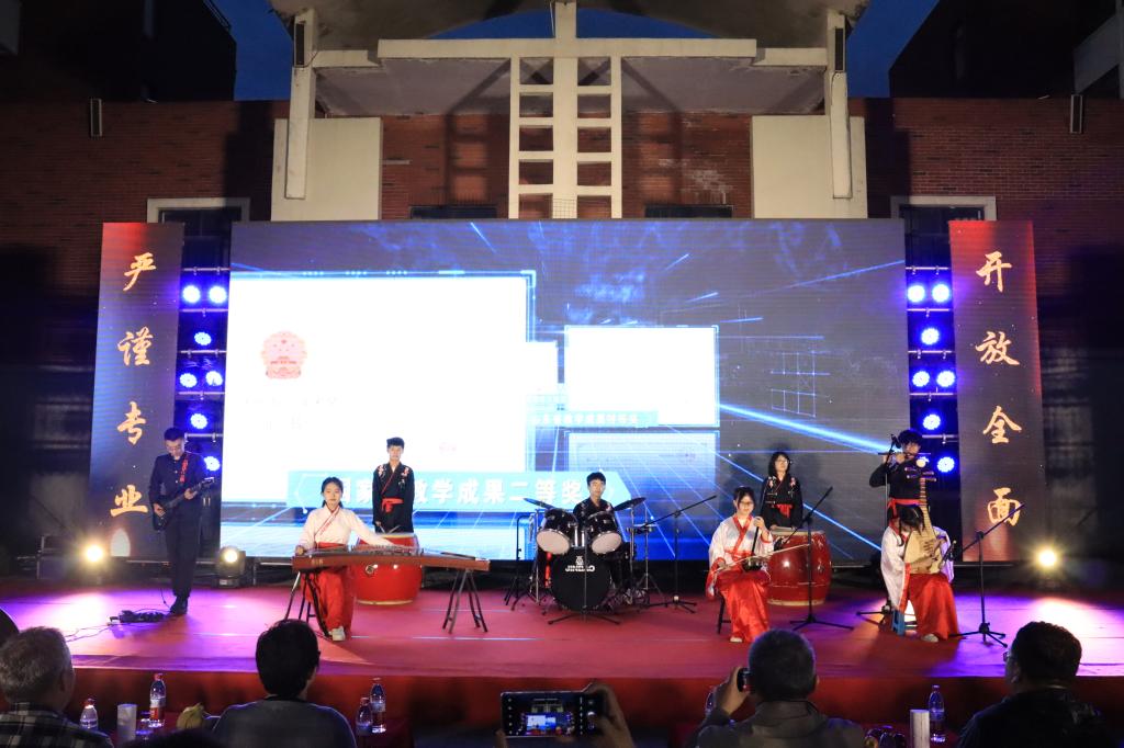 在器乐演奏《山水万程》舒缓动听的旋律中,晚会进入第二篇章“知行合一有情操”。毕业生张振兴、冯睿等演唱的歌曲串烧《回忆小夜曲》,带领大家走过校园的各个角落。教学楼、篮球场……他们含蓄地诉说着与这段时光的离别,用歌声记录青春,用回忆铺垫未来。“每个路口花都开在阳光里,小店门前传来好听的恋曲”,歌曲《平凡的一天》将大家的思绪带回青春奋斗的岁月里,激发了员工们爱校荣校、感恩母校的情怀。