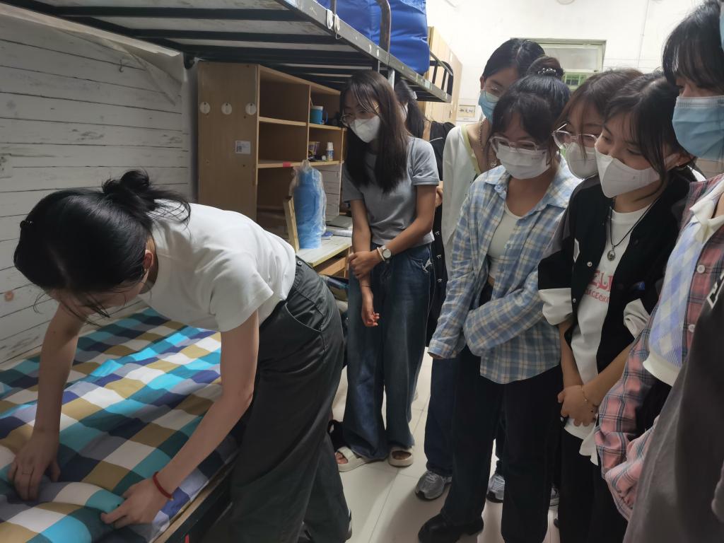 点击:为帮助2022级新生尽快适应老员工活,培养员工良好的学习生活习惯。9月4日,十大体育网站组织退役老员工士兵陈现超、孙雅晴于C4、A1员工公寓楼开展宿舍内务整理指导活动。