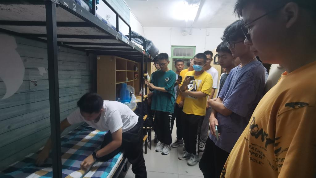 “退伍不褪色,在军队里我可不止学到了这些高水准的内务规范,多年的摸爬滚打、艰苦磨砺,军人精神早已深深烙印在我的灵魂深处。”2019级退役员工孙雅晴如此说到。走出军营,重返校园,脱下军装,陈现超与孙雅晴仍时刻以军人的标准严格要求自己。新冠疫情对新生报到、军训工作等造成了影响,但即使如此,军事教育也不能缺席。他们衷心希望2022级的学弟学妹们能学习军人的品格,并以军人的意志脚踏实地,勇往直前。(郭熙 李骁斐)