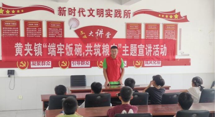 在黄夹镇黄河大集,浓浓的生活气息扑面而来。道路两旁蔬菜水果、服饰鞋袜等商品一应俱全。红糖果子、黄夹馒头,丰富的美食勾勒了文化内涵和历史积淀,反映了黄夹人民的生活方式与价值观念。“现在的生活是越来越好啦!”实践团队深入开展走访活动,与当地居民亲切交流,竭尽所能为他们提供知识宣传服务。队员们陈孙社区对当地员工进行粮食安全宣讲,培养孩子们勤俭节约习惯和居安思危意识,随后和孩子们来到活动室,阅读图书教学舞蹈,活动现场其乐融融。