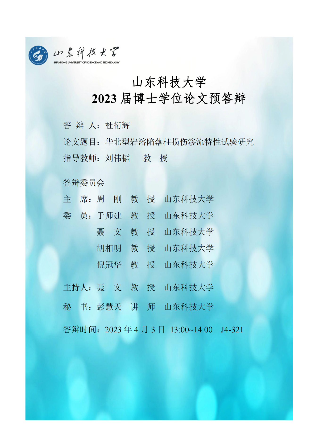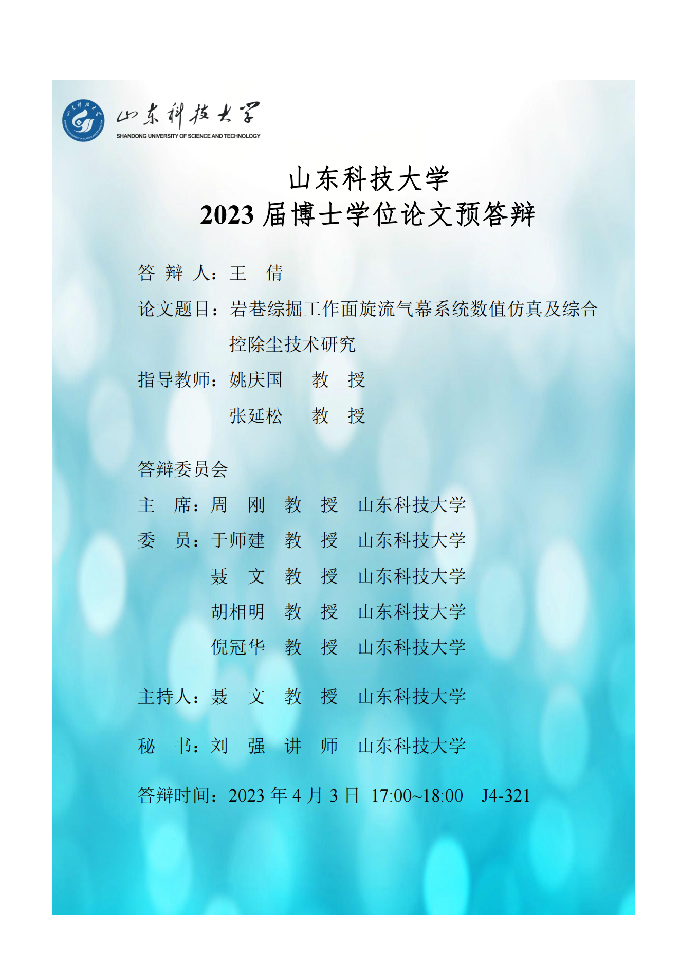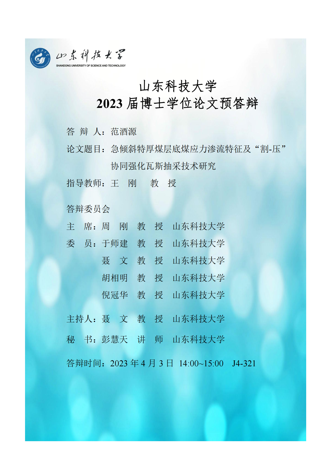 2023年安全科学与工程专业博士预答辩网上公告