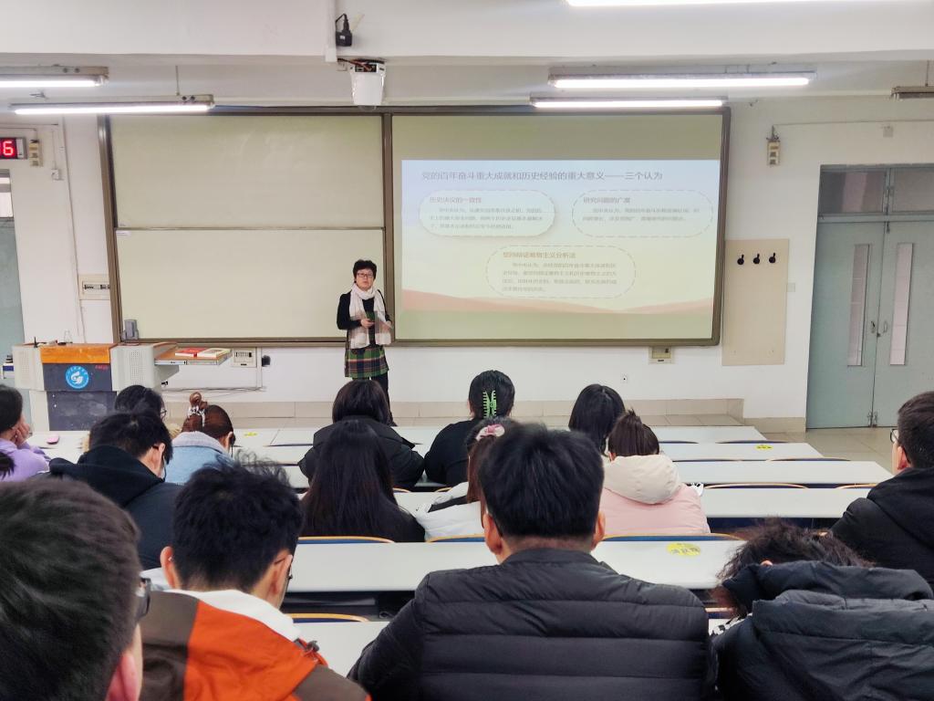 点击:为深入学习党的十九届六中全会精神,引导员工正确认识党百年奋斗的伟大成就和历史经验,激发同学们的爱党爱国热情,12月16日,副经理刘音为安全工程2019级4班作题为“奋斗百年路,启航新征程”党的十九届六中全会精神宣讲报告。