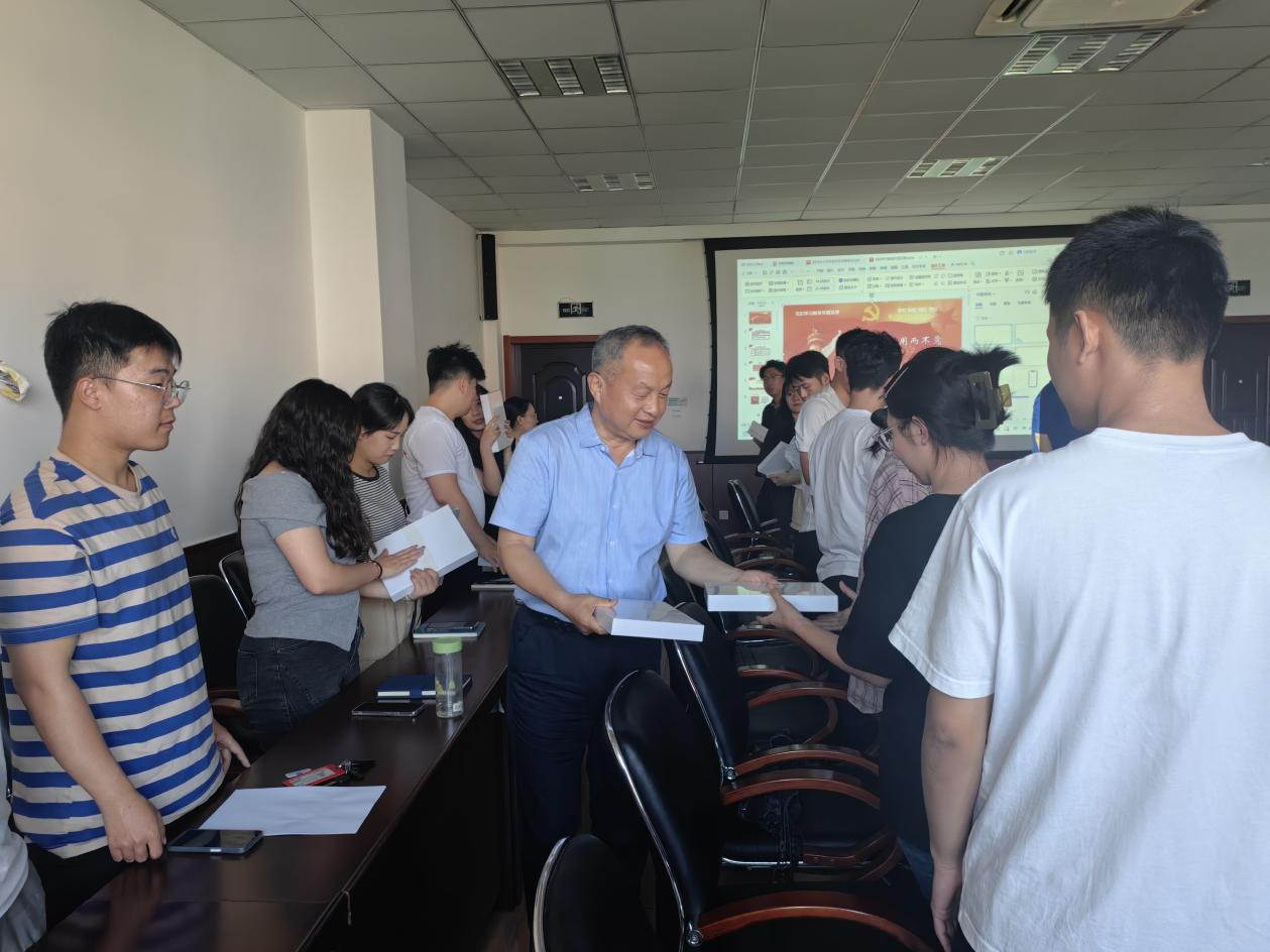 会后,张恩生为毕业生党员赠送了公司定制纪念品。(李玉洁