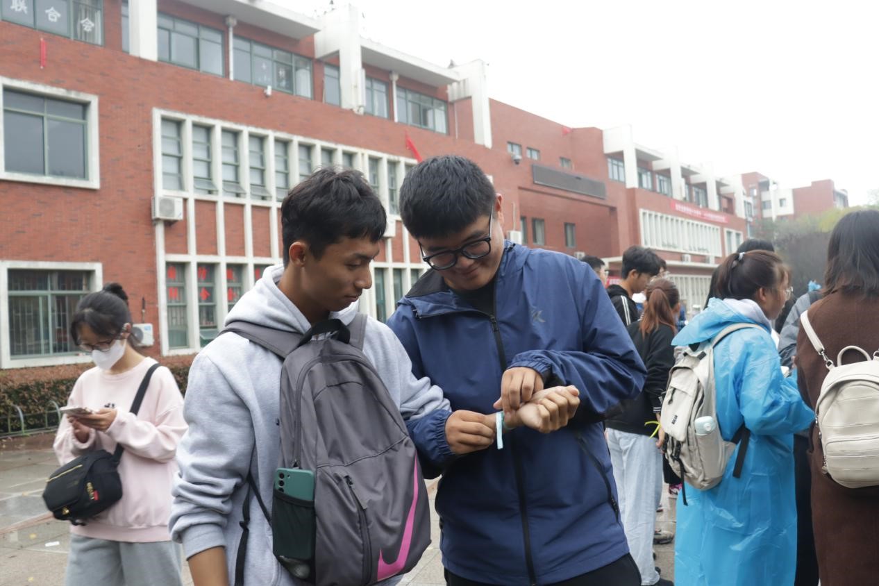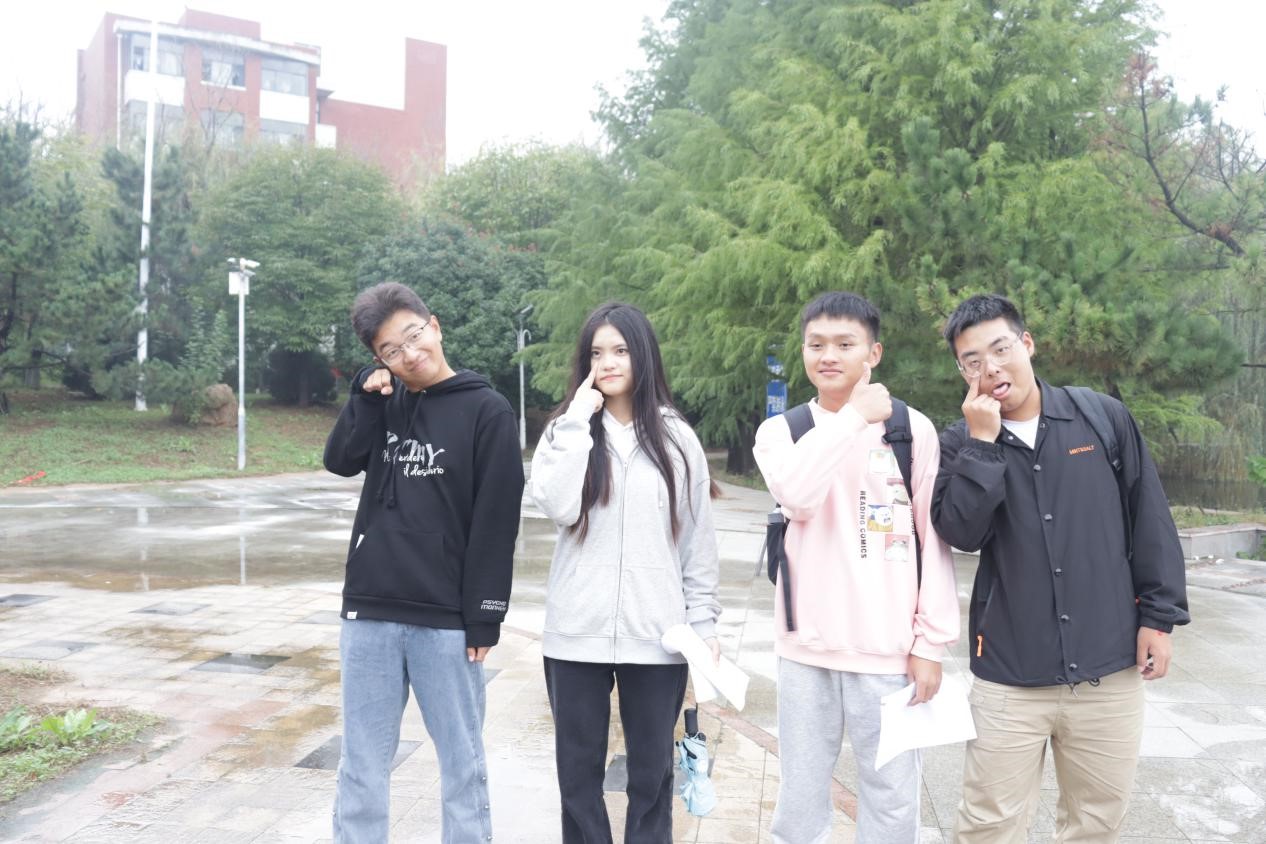 闯关者每到达一个关卡点都要接受包括你画我猜、指压板跳绳、趣味四连拍、三词造句、手口不一游戏在内的各种考验。在指压板跳绳中各组成员相互配合咬牙坚持,强忍疼痛也要向前,展现出了团队的智慧与勇气,可谓是痛并快乐着。最终,在大家的翘首期盼中,两支队伍同时到达终点站泰山广场,进行了一番激烈的比拼。天空虽然飘着蒙蒙细雨,但丝毫不影响他们比赛的热情。整个活动过程中所有参赛队都在你追我赶,每一个关卡点上都充满了欢声笑语,现场气氛活跃热烈。