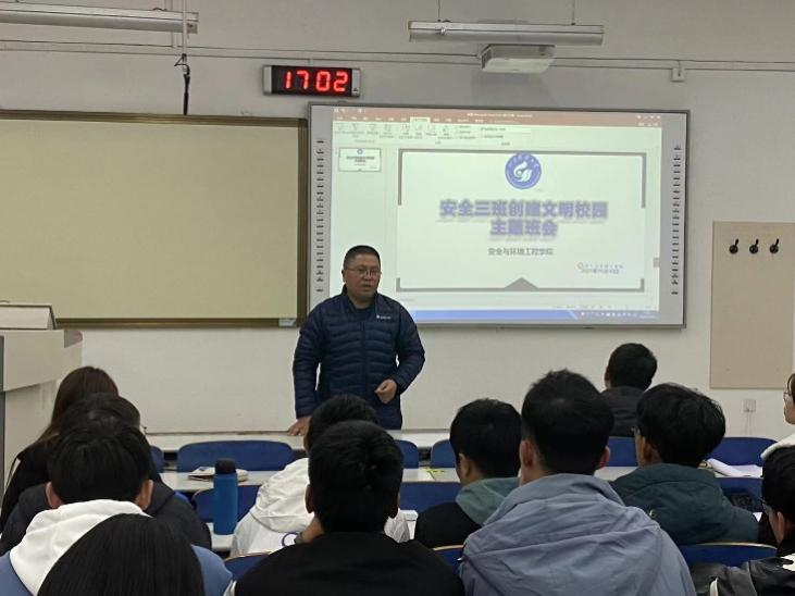 点击:为响应青岛市争创文明典型城市、公司创建文明校园的综合要求,贯彻落实文明校园建设实施方案,11月10日,安全工程2020级3班在s1-217召开“创建文明校园,争做文明师生”主题班会。公司党委副书记兼副经理王建友、班主任刘义鑫参加会议,辅导员满天雷主持班会。