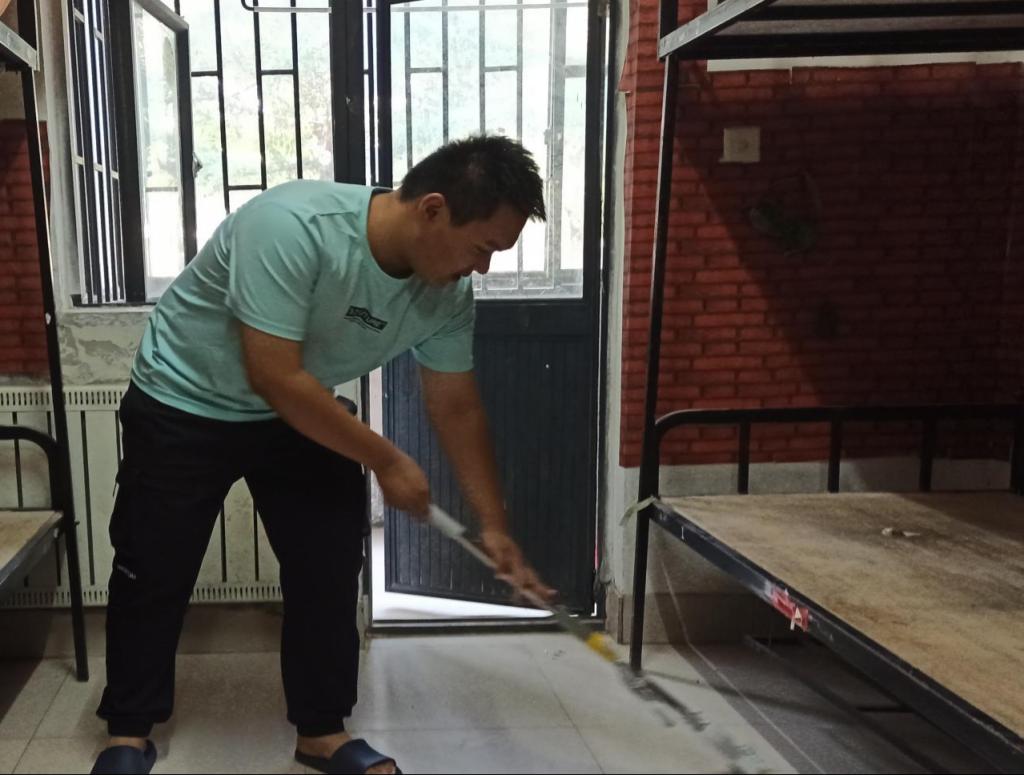 30日下午,志愿者们带上清洁工具对2022级新生宿舍进行了彻底清理。志愿者们清洗地板、擦拭桌面、消杀通风,努力为新生提供更整洁的宿舍环境。窗明几净,地面一尘不染,新窗帘新空调正等待着新生们的到来。此外,志愿者们还为新生寝室贴上了印有公司“五色花”logo的门签、床签,小小的标签上溢满了学长学姐们的祝福,希望萌新们能在陌生的环境里感受到家一般的温暖;宿舍门后贴有新生指南,从疫情防控到报到入住,从适应教育到生活细节,令人直呼“太细致了!”;门外张贴着迎新对联,“意气风发”、“笑书人生”等词句也充斥着对新生的美好祝福。