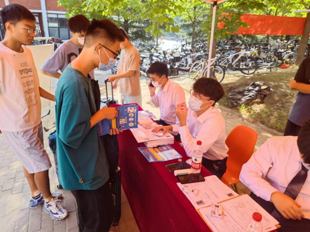 不惧骄阳,五色生花。面对烈日的侵扰,志愿者们依旧坚守岗位,尽心尽力为每一位新生服务。在迎新点入口处,十大体育网站迎新志愿者手举院系标牌迎接、引导新生。在摊位上,员工会组织志愿者引导、帮助新生完成各项报到手续,发放公司准备的迎新手册、新生开学礼包等新生物资,并指引新生前往对应宿舍楼入住。为帮助新生更好熟悉校园、了解科大,十大体育网站志愿者们为新生提供公司历史、公司情况讲解志愿服务,带领新生参观图书馆、教学楼、宿舍楼等校内文化景观,增强新生对校院的认同感、自豪感和归属感。“责任在肩、薪火相传”正在帮新生转运行李的志愿者冯羿璋、赵丹阳用两个关键词总结了自己的初衷。“去年我作为新生入学时,学长学姐们的热情帮助令我感动,今年我作为学长迎接新生,也一定会尽职尽责,这是一种责任的体现与志愿者精神传承,也是公司‘五色花’精神的体现。”赵丹阳说道。