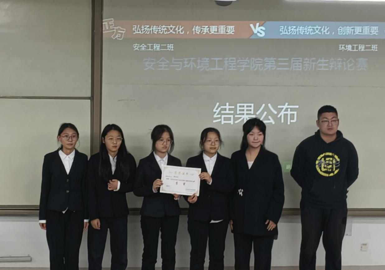 经过初赛的激烈比拼,安全工程三班、安全工程二班与环境工程二班晋级最终决赛。比赛最后一场,由安全工程二班与环境工程二班进行比拼,正反双方分别以“弘扬传统文化,传承更重要”、“弘扬传统文化,创新更重要”为主题展开精彩的辩论。比赛开始,双方首先对“传承”及“创新”两个关键词的定义展开了辩论。正方率先以“传承为本”的思想为己方的论辞打下根基,抛出文化经过了筛选和沉淀,没有传承就没有创新的观点。而反方则主张创新赋予传统文化生命力,并通过列举生动的例子,证明创新对文化的发展具有推动作用。随着正反两方的激烈驳辩,本场辩论也进入高潮。面对安全二班队伍的引经据点、旁征博引,环境二班的辩手们巧用四两拨千斤的方法,一次一次化险为夷,赢得了在场同学的阵阵掌声。最后比赛进入总结陈词环节,双方四辩整理战场,安全二班四辩以清晰的思路与巧妙地陈词充分表述了己方观点,给观众留下了深刻的印象。