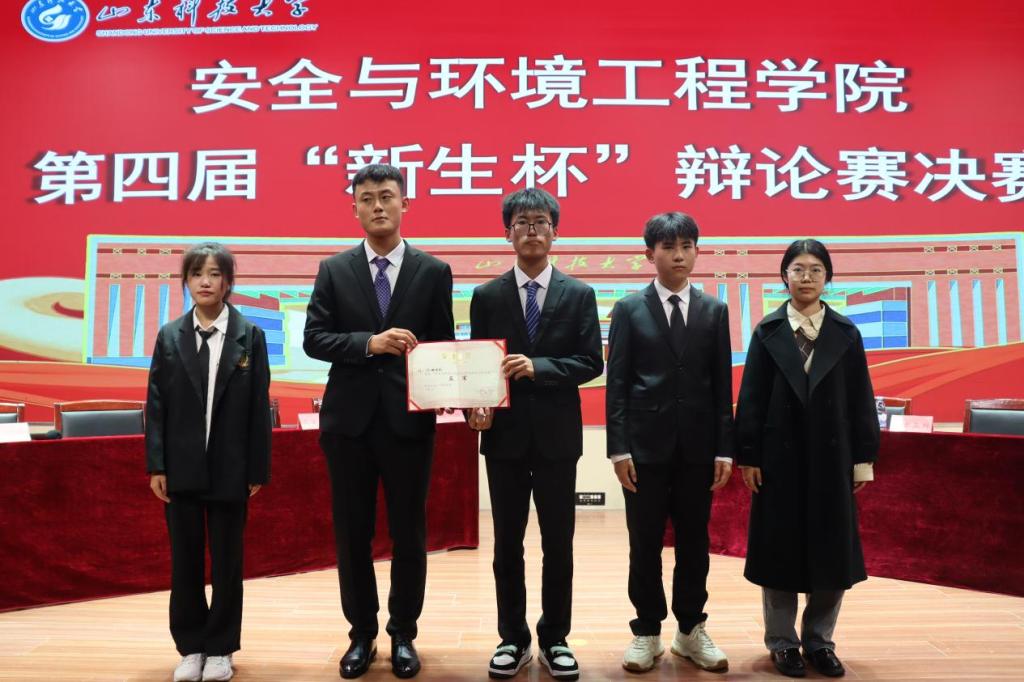 决赛由环境工程二班二队、环境工程三班一队、安全工程四班二队、环境工程三班三队四支队伍两两对决,由所获分数排名决出胜者。两支队伍就“广告利于大众消费VS广告不利于大众消费”和“年轻人该把兴趣当事业VS年轻人不该把兴趣当事业”两个辩题展开激烈讨论。比赛一开始,整个赛场变得紧张激烈,随着正反两方的激烈驳辩,辩论赛进入高潮。面对反方的引经据典、旁征博引,正方辩手们巧用四两拨千斤的方法,一次一次化险为夷,赢得了在场同学的阵阵掌声。最终,环二二队获得冠军,环三一队、环三三队分获亚军、季军。环二二队的马溯源荣获最佳辩手。