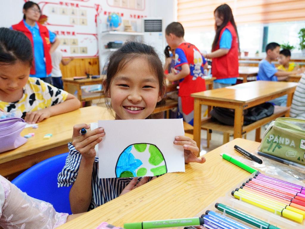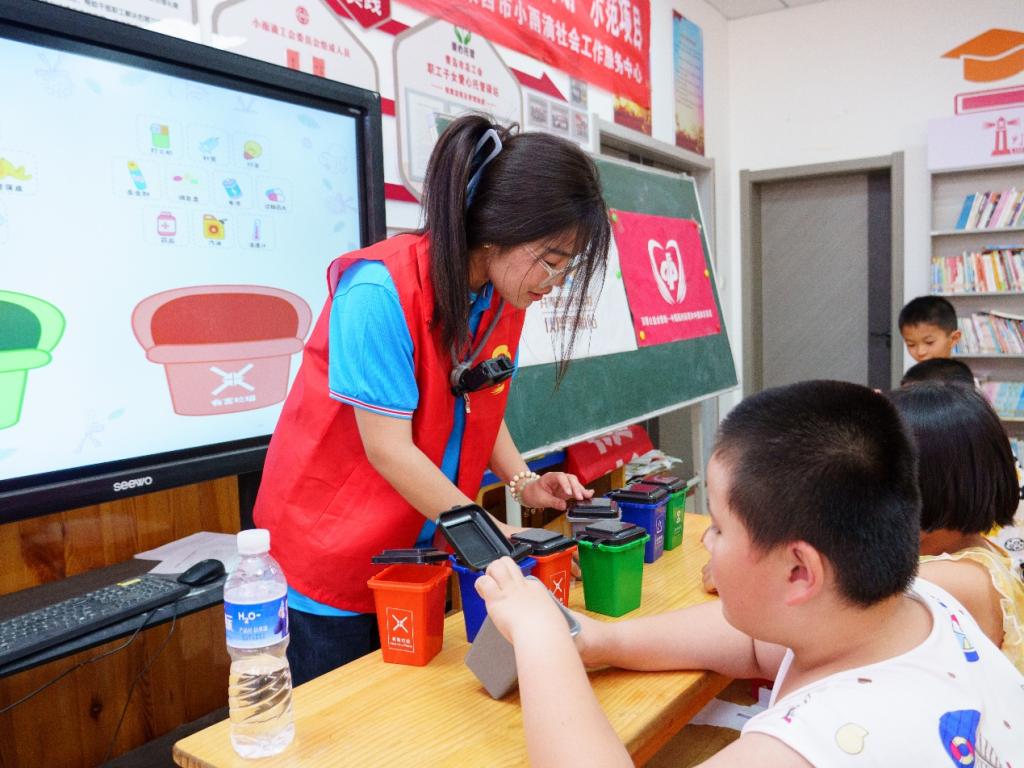 点击:为全面提升新时代青年的综合素质,激发关爱自然、保护环境的责任感,7月21日,红心筑梦-阡陌新禾实践队的老员工志愿者化身“环保导师”在莱西市河头店镇小雨滴社会服务中心开展了一场以“探秘环境密码”为主题的环保公益课堂,通过动画科普、互动游戏与创意绘画,让孩子们在实践中解锁环保知识,播下守护家园的绿色种子。