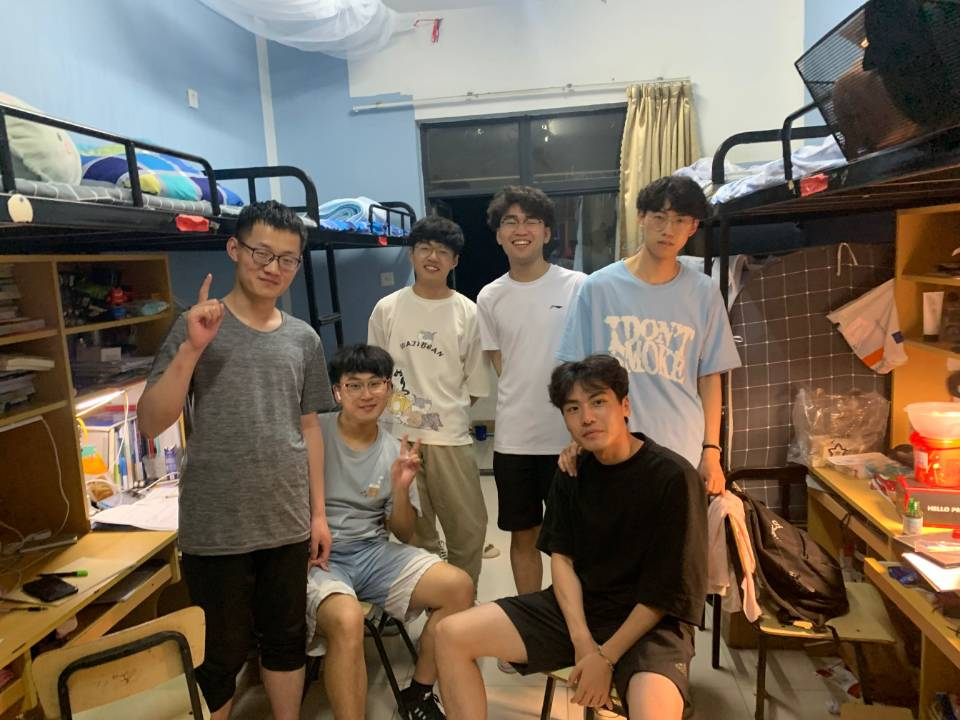 在学习上,他们是竞争者,也是互助者。谈及学霸宿舍养成的秘籍,他们认为相互激励所形成的自律品质及“友好内卷”的宿舍氛围是必要条件。在整个大学时光里,大家基本上都保持着“早出晚归”的生活作息,提早半个小时乃至一个小时来到教室预习,晚自习直到十点以后,是4002宿舍成员的生活常态。平时大家会利用下晚自习、周末等闲暇时间,热烈地讨论自己对某些课本知识的理解,并分享自己学习上的一些好方法、好点子。在考试前,大家也会分享各类考试资料,一起讨论解决问题、一起去图书馆或是教室自习。大家是朋友,也是对方学习的督促者。在学习上互相激励、在生活上互相支持与帮助造就了宿舍良好的学习氛围。“我们的宿舍关系特别好,之前上专业课的时候会两两坐在一起,在舍友需要帮助时也会主动给予帮助。”孙坤如是说。