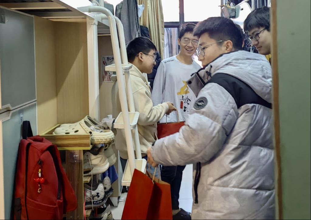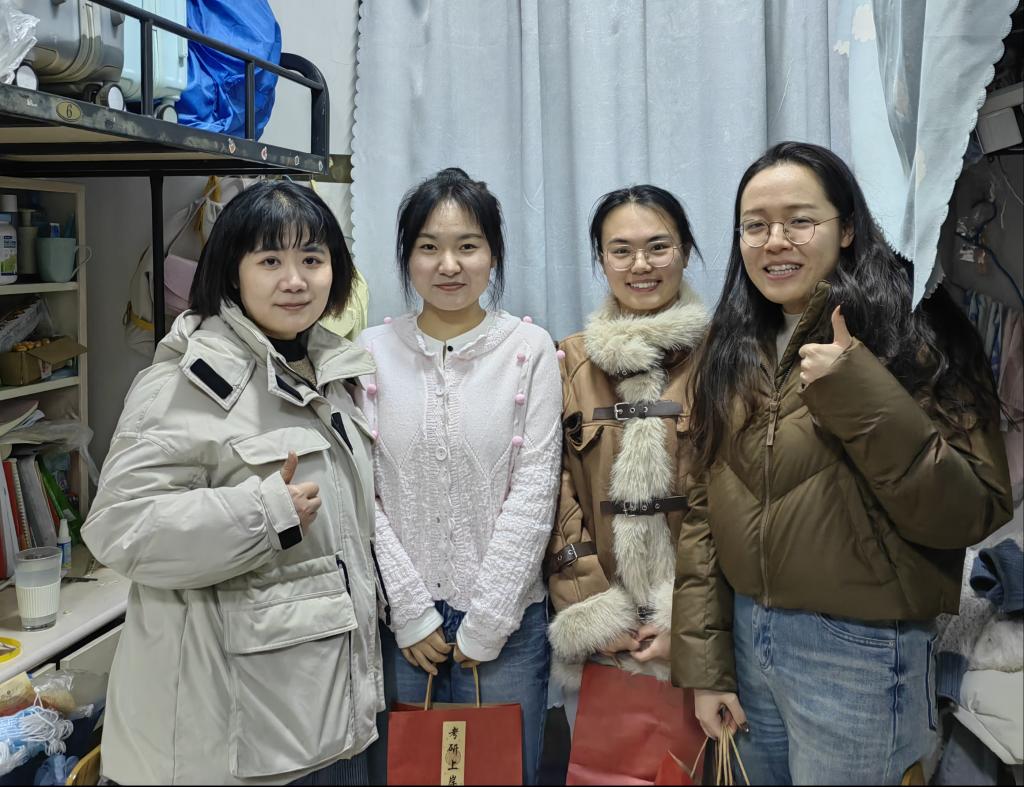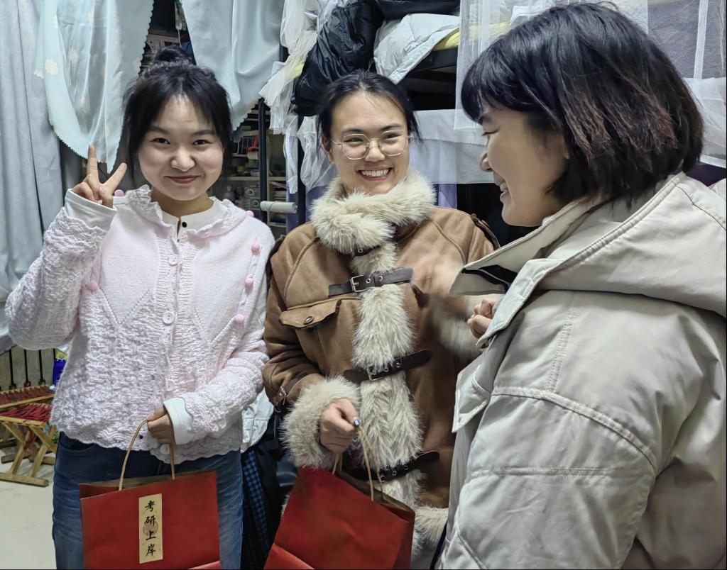 王建友同考研学子面对面交流,心连心关怀,悉心叮嘱同学们在备考过程中要注意调节情绪,避免过度紧张和身心疲惫,保持积极乐观的心态,以饱满的精神状态迎最后的挑战。张娜鼓励同学们要顶住压力、全力冲刺、一战上岸,遇到问题困惑可以随时找老师们沟通,公司永远是同学们坚实的后盾。公司老师及学弟学妹还为考研学子们亲手准备了“考研大礼包”,其中包括寓意美好的橙子,预祝同学们能够一战“橙”硕;精美的考试文具,为同学们考试保驾护航;温馨的祝福贺卡,虽身处寒冬但句句温暖人心。