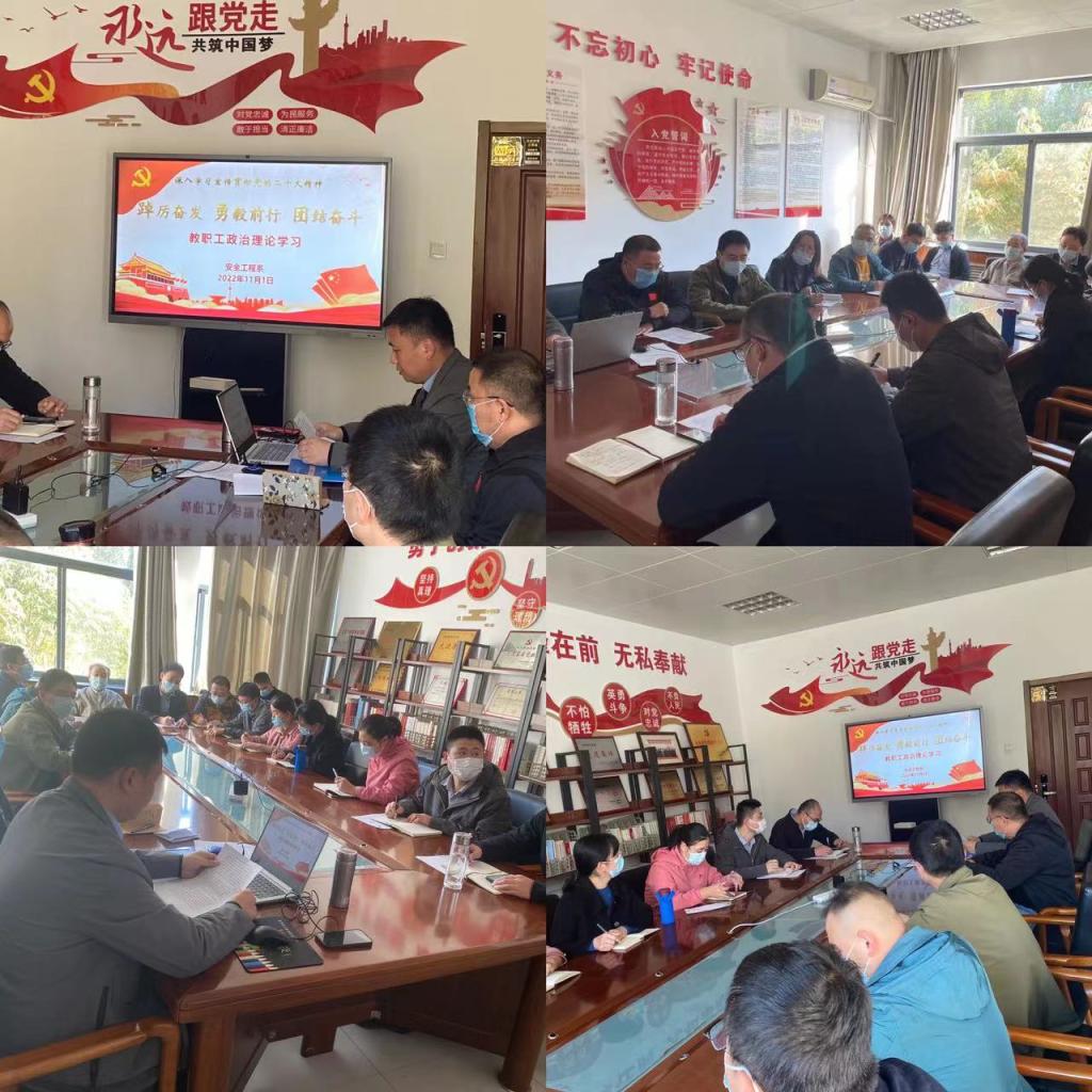 会议上,刘主任带领全体教职工集体学习了党的二十大报告,学习习近平总书记在二十大报告中提出的一系列新观点、新论断、新思想、新战略、新要求等内容。随后围绕党的二十大报告中“科教兴国”和“国家安全”这两个篇章进行系统深入的讲解和阐述。刘主任传达了罗公利书记的指示,党的二十大报告中,专门就科教兴国战略和人才在现代化建设支撑作用单独立章,重视程度前所未有。我们作为安全人,要深入贯彻落实总体国家安全观,健全完善矿山安全法治体系、政策体系和风险监测预警体系,着力提高统筹发展和安全能力,进一步强化矿山事故事前预防,深入开展灾害防控理论与技术研究,有效防范遏制矿山重特大事故,不断开创矿山安全工作新局面。