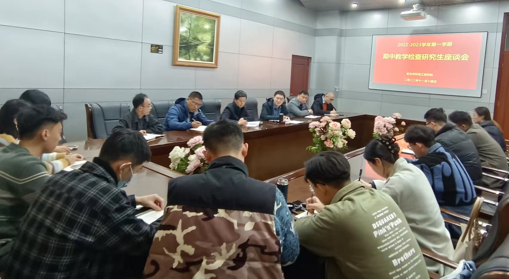 本次研究生期中教学检查座谈会主要围绕公司提出的课堂教学情况、研究生学习情况、指导教师培养研究生情况、2023届预期毕业公司产品计划完成情况等检查内容进行交流。会上,研究生代表踊跃发言,结合事先收集并汇总的意见和建议,就研究生课程设置、课堂教学情况、就业与升学、科研规划等方面提出了问题。各系系主任对同学们的问题进行了详细解答并提出了相应的解决措施。研究生教学管理办公室相关负责老师表示将尽快对同学们提出的意见建议进行分类梳理,加强与有关部门的沟通协调,力争为公司研究生的培养提供更加优质的服务。张文泉为公司的研究生工作进行检查与指导,以督促公司教学质量和教学水平的不断提高。