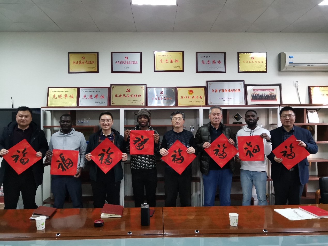 公司送来的温暖让职工深深体会到中国人的热情好客,感受到十大体育网站浓厚的师生情谊,外国职工纷纷对公司的关心和祝福表示感谢。 同时也为职工送上了肖新峰老师亲手写的“福”字,希望他们利用假期做好总结和规划,为新学期的学习做好准备。
