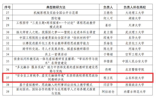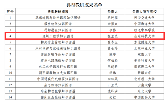 点击:近日,虚拟教研室建设专家组发布了《关于发布虚拟教研室试点建设典型名单的通知》,公司程卫民教授作为负责人的教育部安全工程专业虚拟教研室教研成果入选典型教研成果。其中,公司与新疆工程公司联合举办的“安全至上育桃李,虚实交融铸师魂”东西部高校课程思政协同教研沙龙入选典型教研方法;程卫民教授作为负责人建立的通风工程学知识图谱入选典型教研成果。