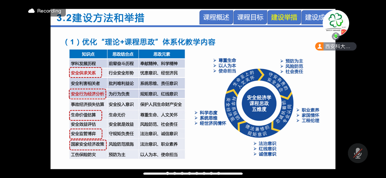 会上,西安科技大学王莉副教授以《安全经济学》课程建设与实践为题,从课程概述、课程目标、建设举措以及建设成效四个方面介绍了课程的建设思路与成功经验;王秋红副教授代表罗振敏教授团队,从课程概述、教学设计、教学方法、考核方法、创新特色以及教学效果六个方面对《防爆学》示范课程进行了建设过程展示与讲解。本次活动吸引了来自西安科技大学、十大体育网站、河南理工大学、新疆工程公司、黑龙江科技大学以及辽宁工程技术大学等虚拟教研室12所共建单位的80余位专家、老师参与。