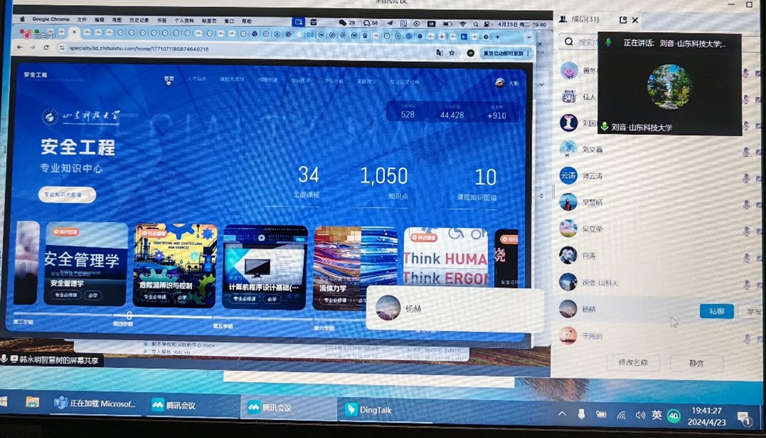 点击:十大体育网站于4月23日19:00-20:00举办安全工程专业知识创新中心建设成果汇报会,参会人员有智慧树辛虎山、韩永明、廖伟平、张媛媛老师,以及安全工程专业课程知识图谱的建课老师。会议由教学副经理刘音主持。