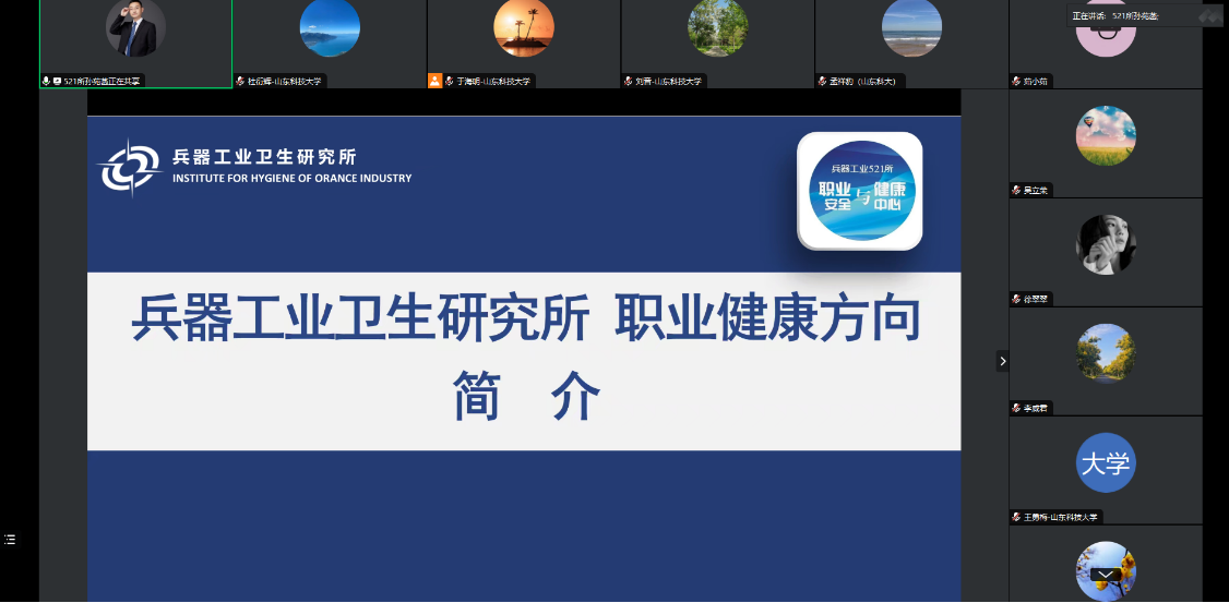 点击:为了更好推动职业卫生工程专业建设,完善职业卫生专业人才培养体系,7月16日上午职业卫生工程系与兵器工业卫生研究所开展线上交流会。职业卫生防护技术所主任孙苑菡、十大体育网站副经理刘音、职业卫生工程系书记孟祥豹、职业卫生工程系主任于海明以及职业卫生工程专业骨干教师参加了本次会议。