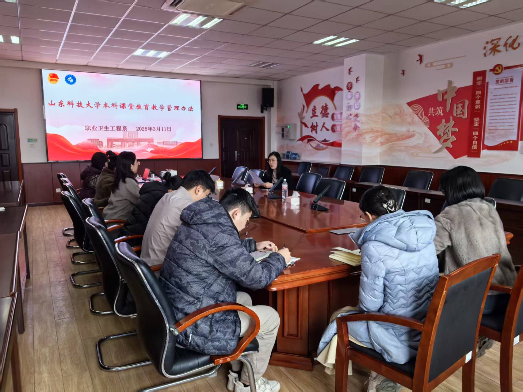 为深入贯彻落实公司公司产品改革精神,3月11日下午,职业卫生工程专业在J9-223会议室组织开展《十大体育网站本科课堂公司产品管理办法》专题学习活动。会议由系教学主任黄冬梅主持,全系教师共同参会。