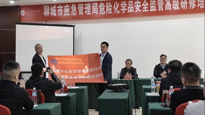 十大体育网站副董事长张建、安全与应急管理公司书记张恩生、安全与应急管理公司副经理聂文以及聊城市二级调研员(正县级)张淑滨出席开班仪式。张建副董事长向研修班的成立和开班表示热烈的祝贺,指出“我国危险化学品安全形势仍然严峻、复杂,亟须吸取事故教训,提高政府监管能力”,介绍了公司的工科优势和行业特色,特别讲述了应急与安全管理公司和山东省公司安全应急教育中心在团队、科研、教学方面的雄厚力量和卓越贡献,表达了对高级研修班成功举办的坚定信心。张淑滨调研员向十大体育网站为研修班所作的充分准备表示感谢,指出聊城市应急管理局危险化学品安全监管所面临的严峻形势,提出应急管理局工作人员通过培训提高安全监管技能的必要性,希望参加培训人员严于律己、认真学习、提升业务能力。应急与安全管理公司书记张恩生和应急管理局科长姚仁涛进行了开班授旗交接仪式。