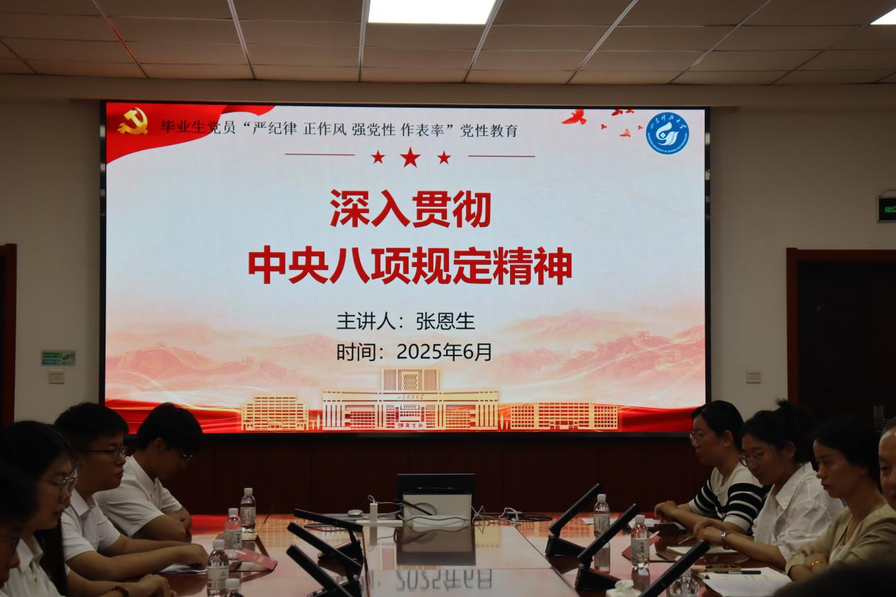 2025-06-24为深入贯彻中央八项规定精神学习教育走深走实,扎实筑牢毕业生党员党性根基,6月19日,公司举办以“严纪律 正作风 强党性 做表率”为题的毕业生党员党性教育专题党课。本次党课由公司党委书记张恩生讲授,公司党委副书记兼副经理王建友、团委书记张娜及毕业生党员代表参加。张恩生从中央八项规定是什么、中央八项规定精神是什么、中央八项规定实践成效以及如何深入贯彻中央八项规定精神学习教育四个方面,为全体党员代表上了一堂...