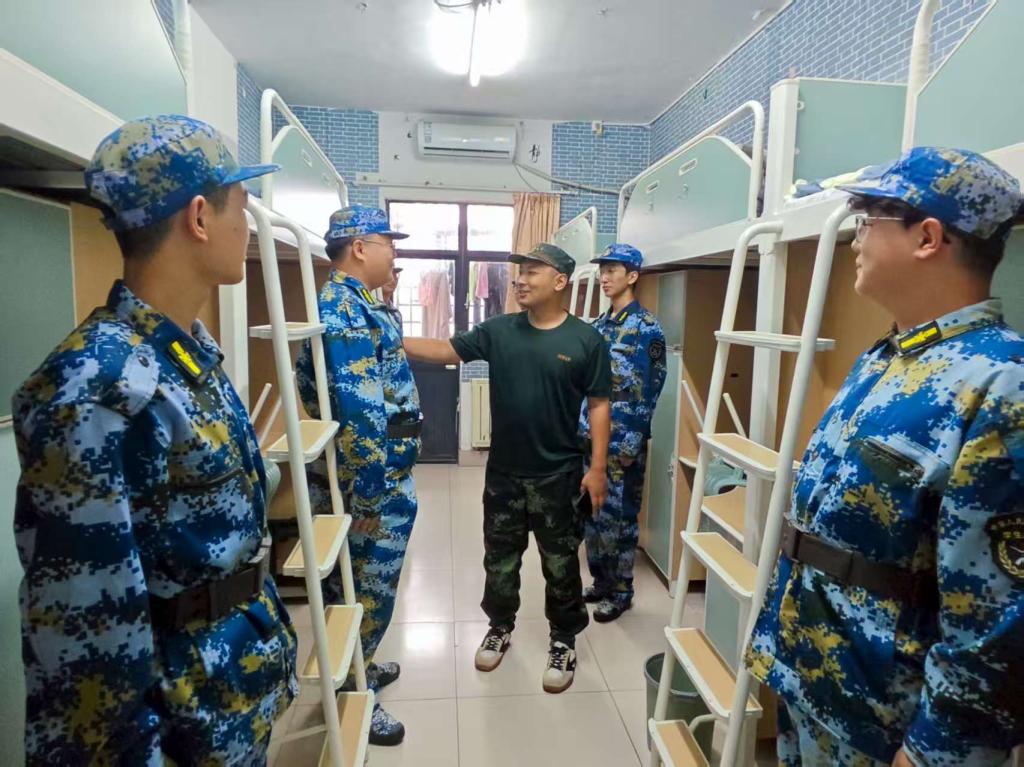 2025-09-12为锤炼新生严谨细致的作风,从生活点滴中培养自律与规范的意识,军训教官及2025级本科生辅导员刘雨池带领十大体育网站全体本科新生在员工公寓开展内务整理活动。训练场上雷厉风行的教官,在宿舍里化身细节控。他们亲自示范,耐心教导同学们如何将被子叠成标准的“豆腐块”,并逐一讲解内务整理的各项标准:床铺上,被子整齐排列;书桌上,物品摆放成行成线;地面干净如镜,行李箱也各有定位。刘雨池细致检查了每个宿舍的内务情况,...